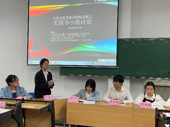 本学期行政管理系的实践课程《公务员招考面试》在线下集中授课,分为结构化面试、结构化小组面试和无领导小组讨论三个训练环节,每一个环节都进行实战模拟和现场点评。课程的每一次训练都经过任课老师韩晓莉教授的精心设计,需要员工干部协助配合和全体同学的踊跃参与,短短16学时,同学们慢慢由被动变得主动、紧张胆怯变得自信勇敢。通过课程学习训练,同学们不仅了解了公务员面试的内容和流程,也掌握了许多实用有效的面试技巧,提高了未来求职面试的信心。