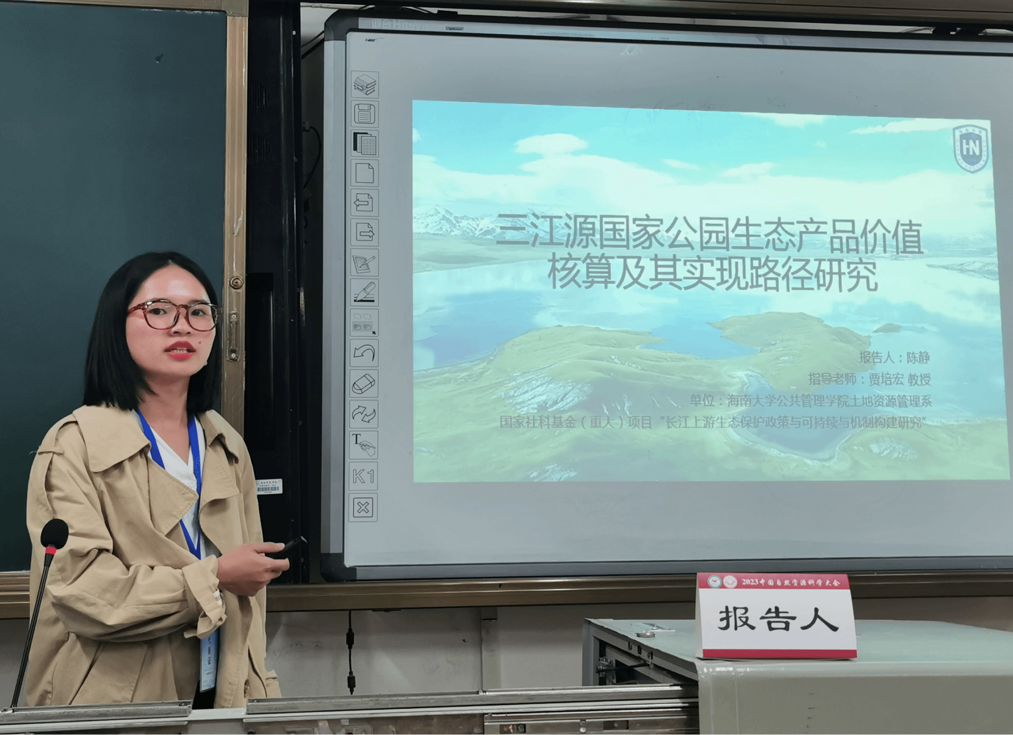在19日的分会场主题报告中,贾培宏教授作题为“长江上游生态系统碳汇潜力分析及多情景模拟研究”的学术报告,详细报告了其团队以3S技术为基础耦合InVEST与PLUS模型,以格网为评估单元挖掘1990-2020年间土地覆被转化的碳汇效应演化规律,在综合考虑气候-土地利用景观-社会经济等因素影响下模拟不同情景2035年土地覆被及碳储量状况。博士生朱雨芯作了题为“长江上游地区生境质量时空演变及其驱动机制研究”的学术报告。硕士生刘阳、陈静、梁传卓分别作了题为“海南热带雨林国家公园生态空间保护格局研究”“三江源国家公园生态产品价值核算及其实现路径研究”以及“基于LDA模型的中国长江上游环境保护政策关注度配置分析”的学术报告。其中,公司二年级硕士研究生陈静获本届大会优秀论文奖。