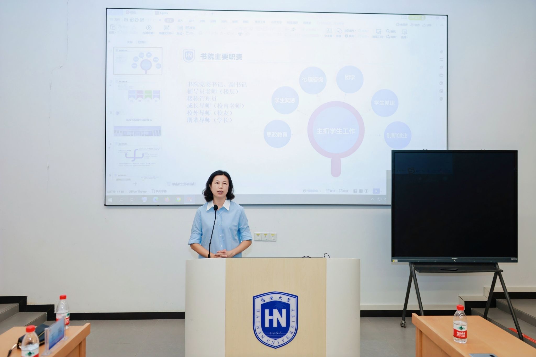 党委副书记欧少红介绍了suncitygroup太阳集团书院制改革的具体情况、公司与书院在双院协同的育人机制下开展的主要工作及成效,并倡导家校携手,合力育人,发挥出“1+1>2”的作用。