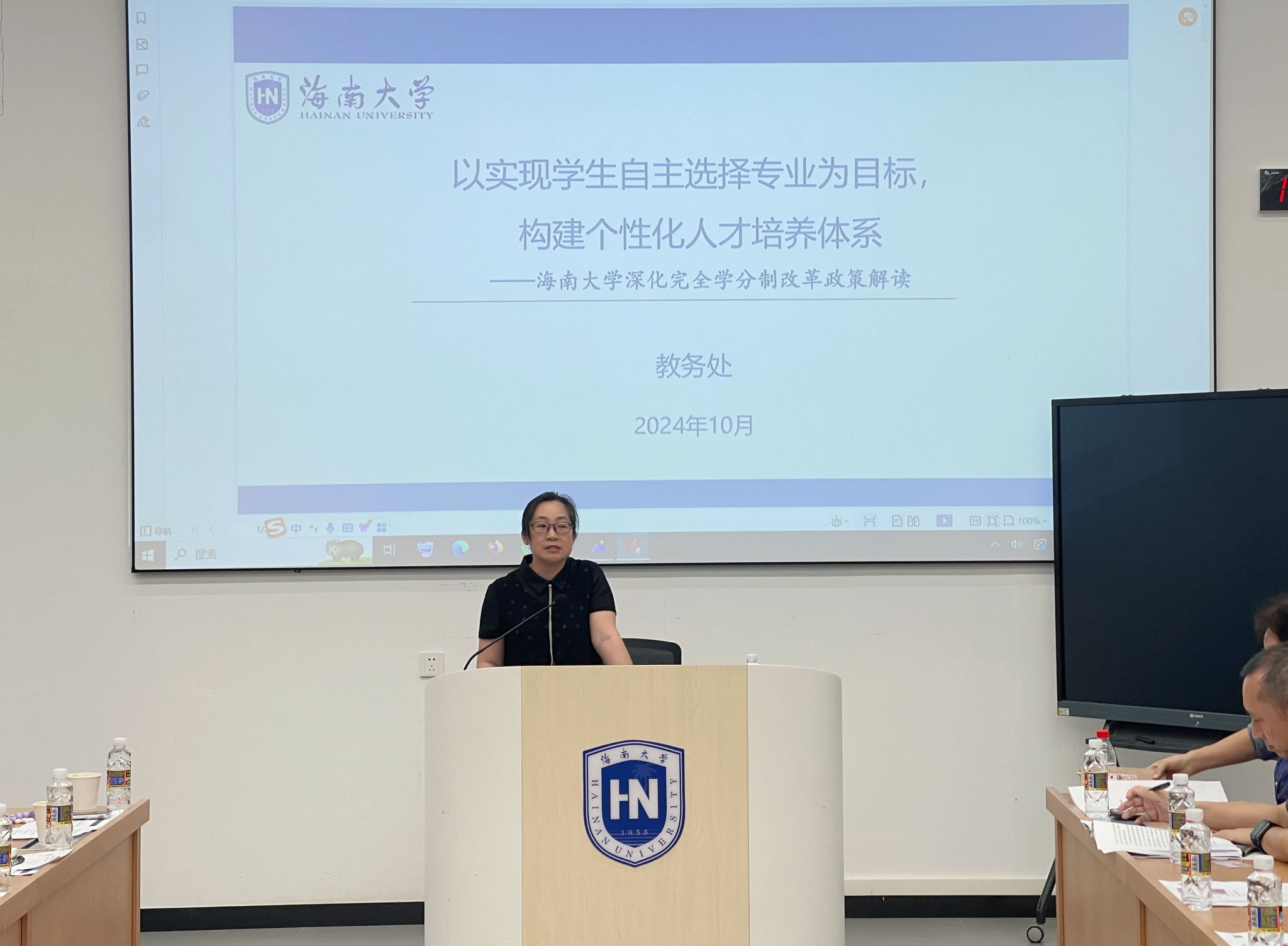 2024年10月22日下午,suncitygroup太阳集团在观澜湖校区3A103教室召开了全体教职工大会。大会邀请了suncitygroup太阳集团教务处(继续教育公司、创新创业公司、退役军人教育公司)李玉凤副经理、教务处教材科科长余力力为全体教职工做关于suncitygroup太阳集团深化完全学分制改革的政策解读。公司经理王琳、执行经理徐艳晴、党委书记郭强、副经理何彪、副书记欧少红、副经理黄朝明、挂职副经理刘海洋出席大会,大会由王琳经理主持。