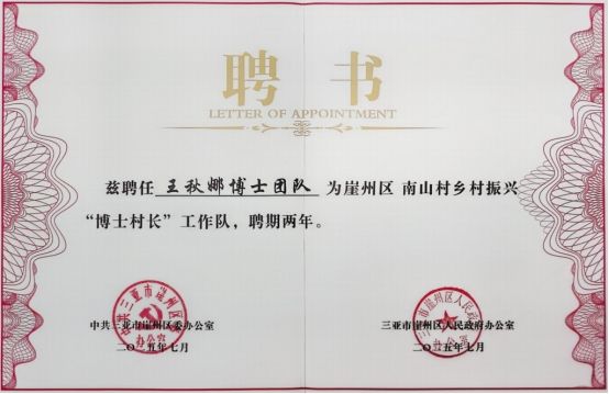 近日,崖州区第二批乡村振兴“博士村长”总结大会暨第二批续聘及第四批乡村振兴“博士村长”聘任仪式在三亚崖州湾科技城举行。2021级旅游管理专业博士生王秋娜受聘为第四批“博士村长”,并作为新聘代表在仪式上发言。