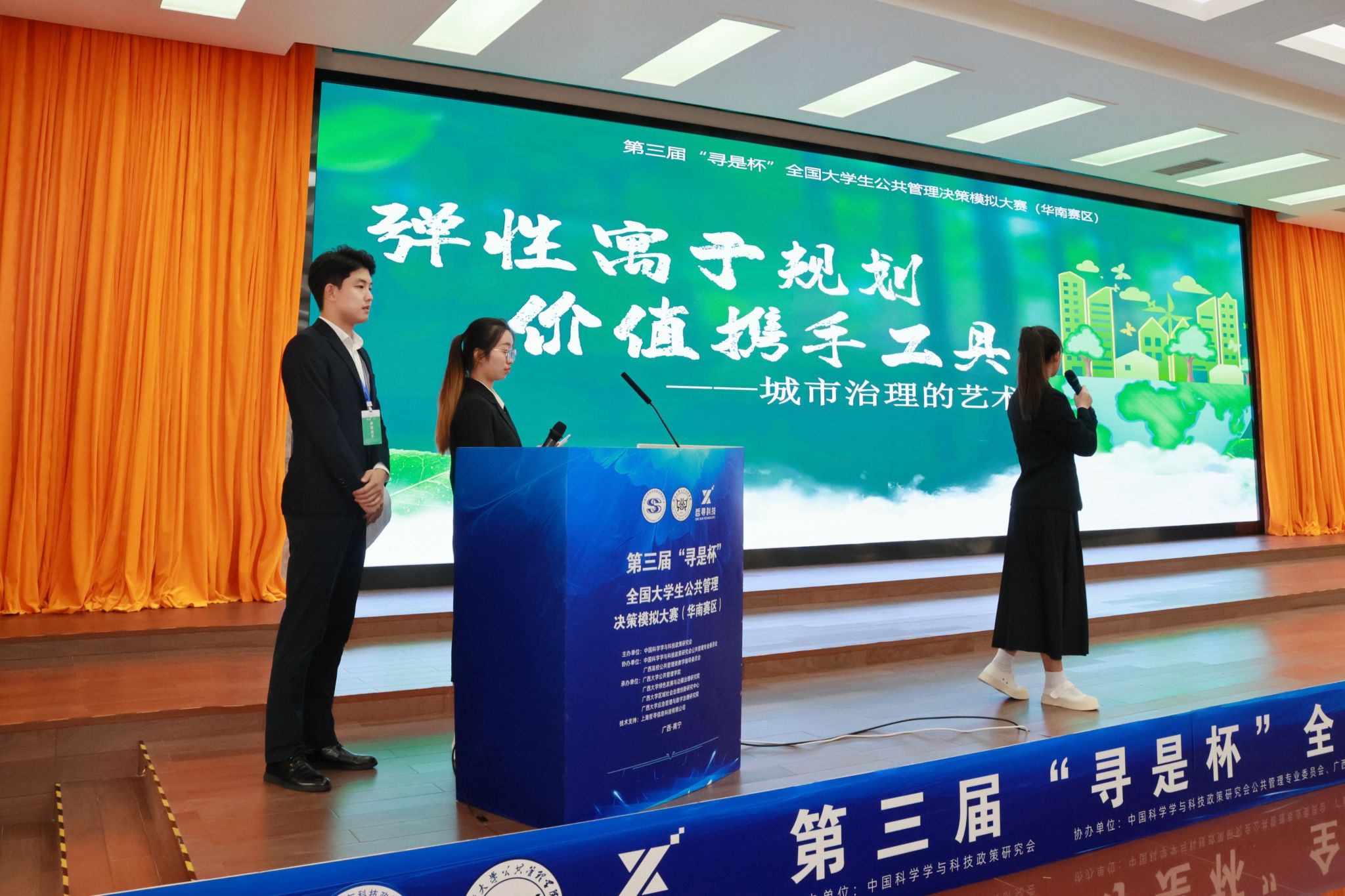 在答辩环节中,团队以《弹性寓于规划,价值携手工具》为汇报主题,巧妙地将案例与所学知识相结合,深入探讨了工具理性与价值理性的辩证关系。体现了队员们扎实的专业素养和创新能力,也展现了suncitygroup太阳集团学子的卓越风采。经过紧张而激烈的现场答辩,公司“齐心同誉”队脱颖而出,荣获第三届“寻是杯”全国老员工公共管理决策模拟大赛华南赛区特等奖。