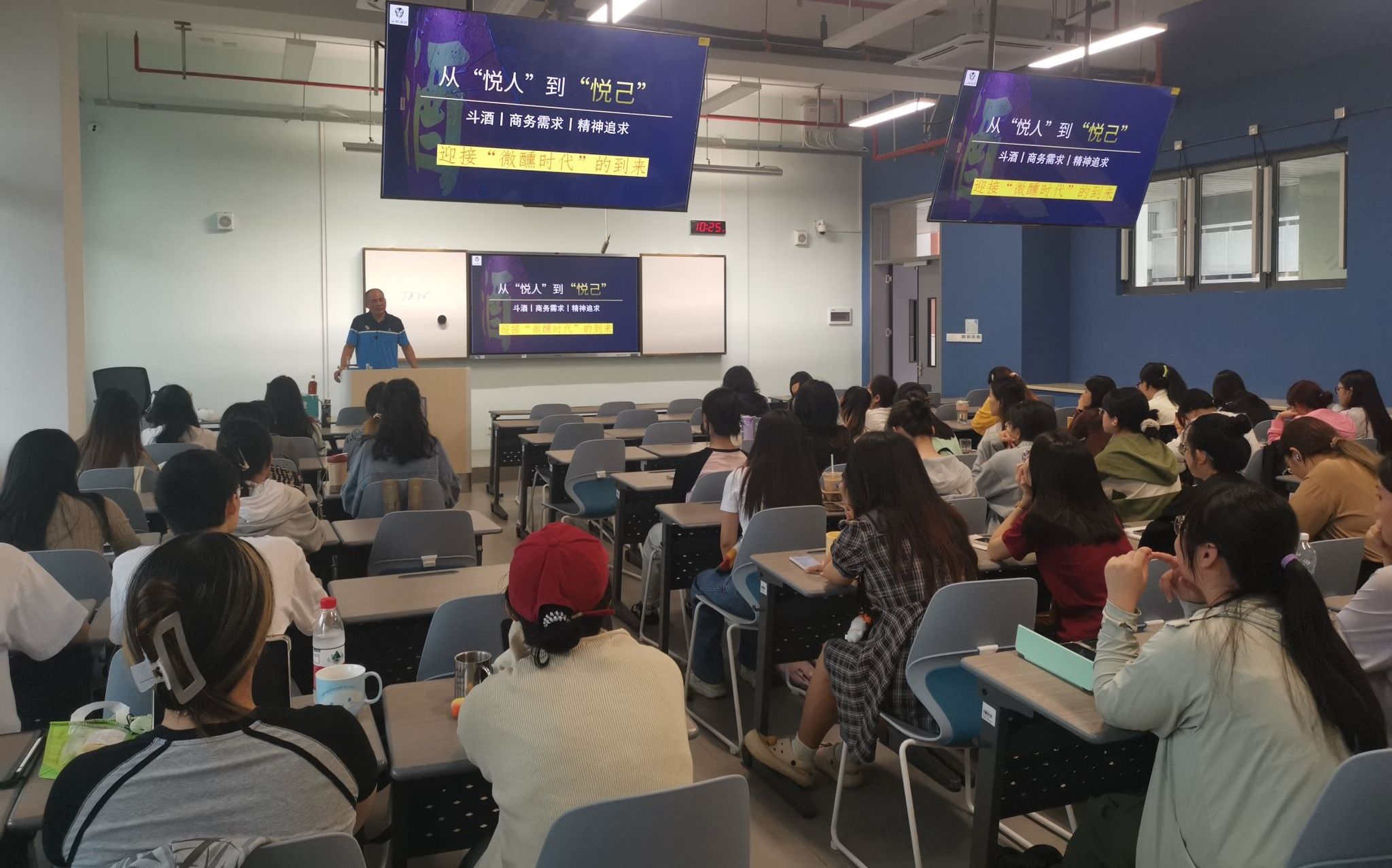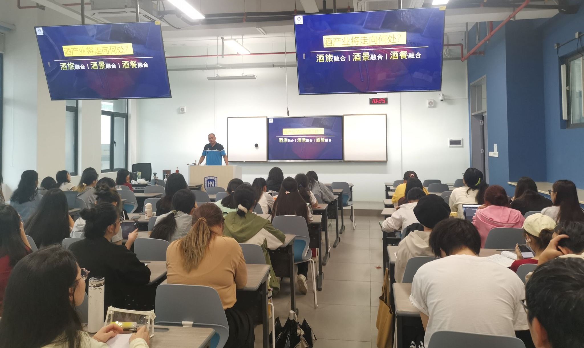 10月28日,公司“酒水知识与品鉴”本科课程邀请了2024届“旺工淡学”项目优秀毕业生、海南山栏酒庄有限公司合伙人范增友先生为同学们授课,分享他在海南传统文化、农业产业支持以及海南本土山栏酒发展方面的卓越贡献与独到见解。范增友先生对海南传统文化有深入的研究并积极推广,还通过举办文化节庆活动、支持非物质文化遗产保护等方式,有效提升了公众对海南文化独特价值的认识与尊重。