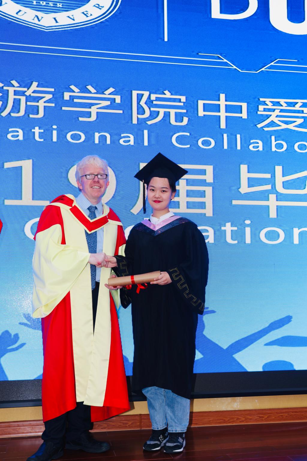 在学位授予仪式上,Dominic Dillane经理为2019届毕业生颁发学位证书和拨穗、郭强经理和Ralf Burbach副经理分别向毕业生赠与中爱双方毕业纪念品。Ralf Burbach副经理还向获得都柏林理工大学“优秀毕业生”和“优秀毕业论文”荣誉的员工颁发了证书,对他们的杰出表现给予了充分认可。