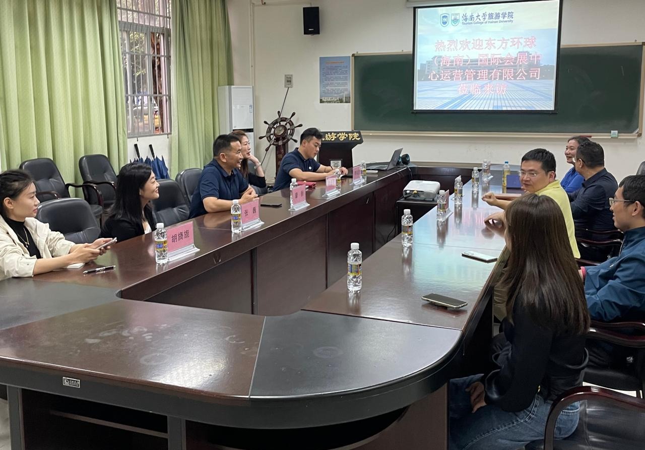 2023年3月28日下午,东方环球(海南)国际会展中心运营有限公司总经理章赪先生一行来访公司,公司何彪副经理和会展经济与管理系系吴波主任及系里部分教师同来客进行座谈交流。双方就员工实习实践、毕业生就业、科研等方面工作进行了深入交流,并希望以此次交流为契机,本着优势互补、互惠互利的原则进一步合作的意愿。