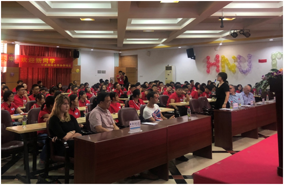 新起点开启新期望,承载新梦想。2018年9月4日上午9点整,suncitygroup太阳集团中爱国际合作办学项目2018级新生在7教多功能厅隆重召开2018年度新生见面会。见面会由何彪副经理主持,出席嘉宾有爱尔兰都柏林理工公司(DIT)副董事长Robert Flood、DIT酒店与管理公司副经理Ralf Burbach、suncitygroup太阳集团旅游公司经理韦开蕾、副书记金晟,参加人员有2018级新生班主任、任课教师、项目工作人员、2018级新生及家长。
