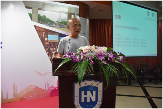 随后,金晟副书记上台致辞。首先,金晟副书记对2018级新生提出了三个问题,即,大学教育是不是传授专业知识?是不是为了提高就业率?是不是为了培养好员工?引起新生的深思。之后,金晟副书记将一首自创诗送给新生,并讲解其中的含义,希望新生能像诗中提到的一样,积极进取、立志高远、胸怀远大、英勇豪迈。