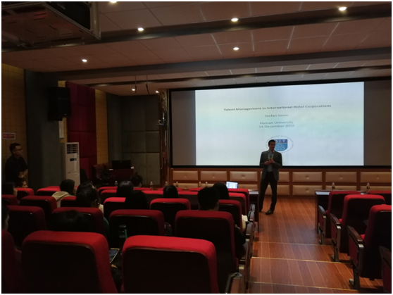 在校的研究生、MTA全日制研究生、中爱合作项目及旅游管理(国际旅游方向)的员工及老师于2018年12月14日上午十点在九号教学楼3D实验室,聆听了suncitygroup太阳集团建校60周年系列学术讲座。爱尔兰都柏林理工公司酒店与旅游公司 Stefan Jooss博士担任本次学术讲座的主讲人,韦震老师担任此次讲座的中文翻译。