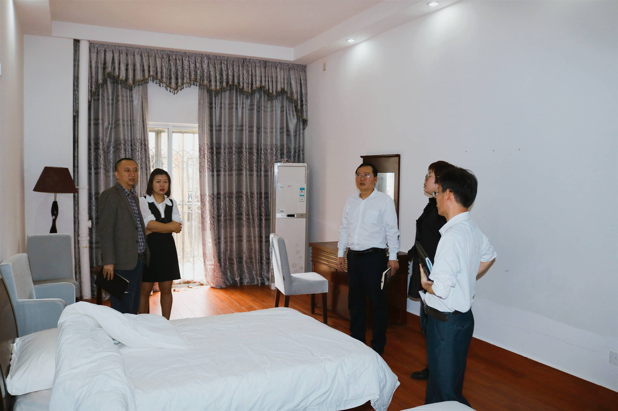 3月14日上午,为切实做好春季学期开学初及全国两会、博鳌亚洲论坛年会期间公司安全稳定工作,旅游公司新任经理郭强、主持党委工作副书记韩力光率队对全院进行安全稳定工作大检查。