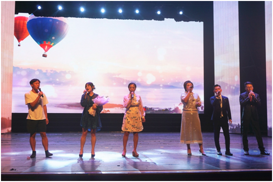 时光飞逝,转眼第三篇章《再见好戏渐启》启幕。由公司五老员工组织的前负责人们合作的诗朗诵《四年一梦,一梦千寻》温情四溢,带领大家回望拼搏付出的青葱岁月;由三组师生组合共同演唱的《追梦人》催人奋进,激励大家向美好的明天进发。接下来,屏幕上播放由员工会精心制作的师长及家长寄语视频,老师和父母的教诲与期许感人至深,真切动人,现场的掌声经久不息。