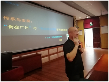陈非副教授以其专业的行业知识和幽默诙谐的语言魅力发言阐述自己的想法,围绕“食在广州”与粤港澳美食之都主题与suncitygroup太阳集团旅游公司的同学进行分享,从餐饮行业本身畅游到粤菜与广州餐饮业的现状和成就;不仅如此,陈副教授以其对广州餐饮业的深入研究,对现有广州餐饮业战略进行定位剖析,对粤港澳“美食之都”给予高度肯定与期望,并为大家展望海南省美食与旅游业结合的未来趋势。短暂的一个半小时的讲座精彩纷呈,博得同学们一阵阵热烈掌声。公司谢祥项副经理主持并对讲座进行了精炼的总结。