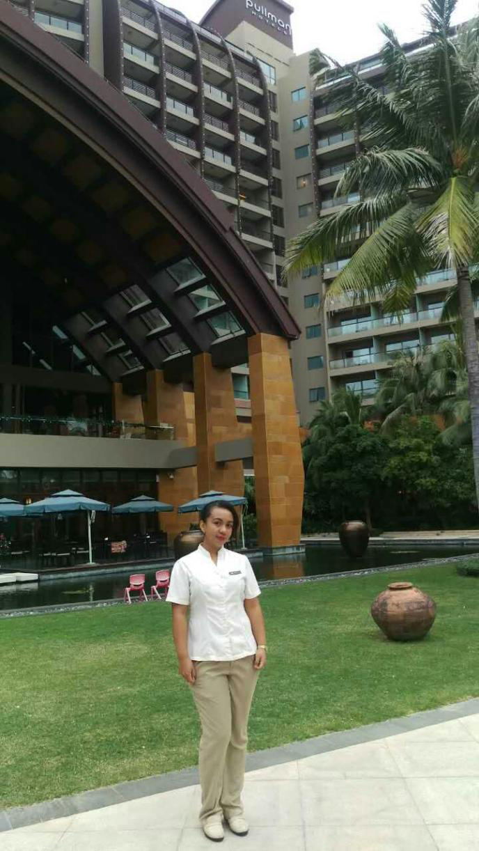 近期与旅游公司开展国际管培生合作的三亚亚龙湾铂尔曼度假酒店2008年建成开业。铂尔曼(Pullman)是法国雅高酒店集团(AccorHotels)旗下专为满足商务旅行人士的需求而打造的国际高端酒店品牌。双方前期密切接触,三亚铂尔曼酒店对酒店管理系的人才培养质量给予高度认可。历经多轮协商,双方达成一致,共同合作举办“酒店管理国际管培生”合作项目。此项目是公司在今年10月与原喜达屋集团国际品牌海南区合作管理培训生(MT)项目的基础上的进一步提升。项目不仅可以向酒店方输送公司优秀员工作为管理培训生,更为职工提供了一个极佳的高位实习和高端就业的机会。近期,酒店管理系向三亚铂尔曼酒店推荐公司来自于马达加斯加共和国(Madagascar)的职工Andrianjanahary Ida应聘其国际管理培训生。Ida精通法语、英语,略懂中文,在杜肖寒老师等老师的精心指导下,经过几轮面试,Ida终于脱颖而出,成功获得三亚铂尔曼酒店国际管培生的实习就业机会。