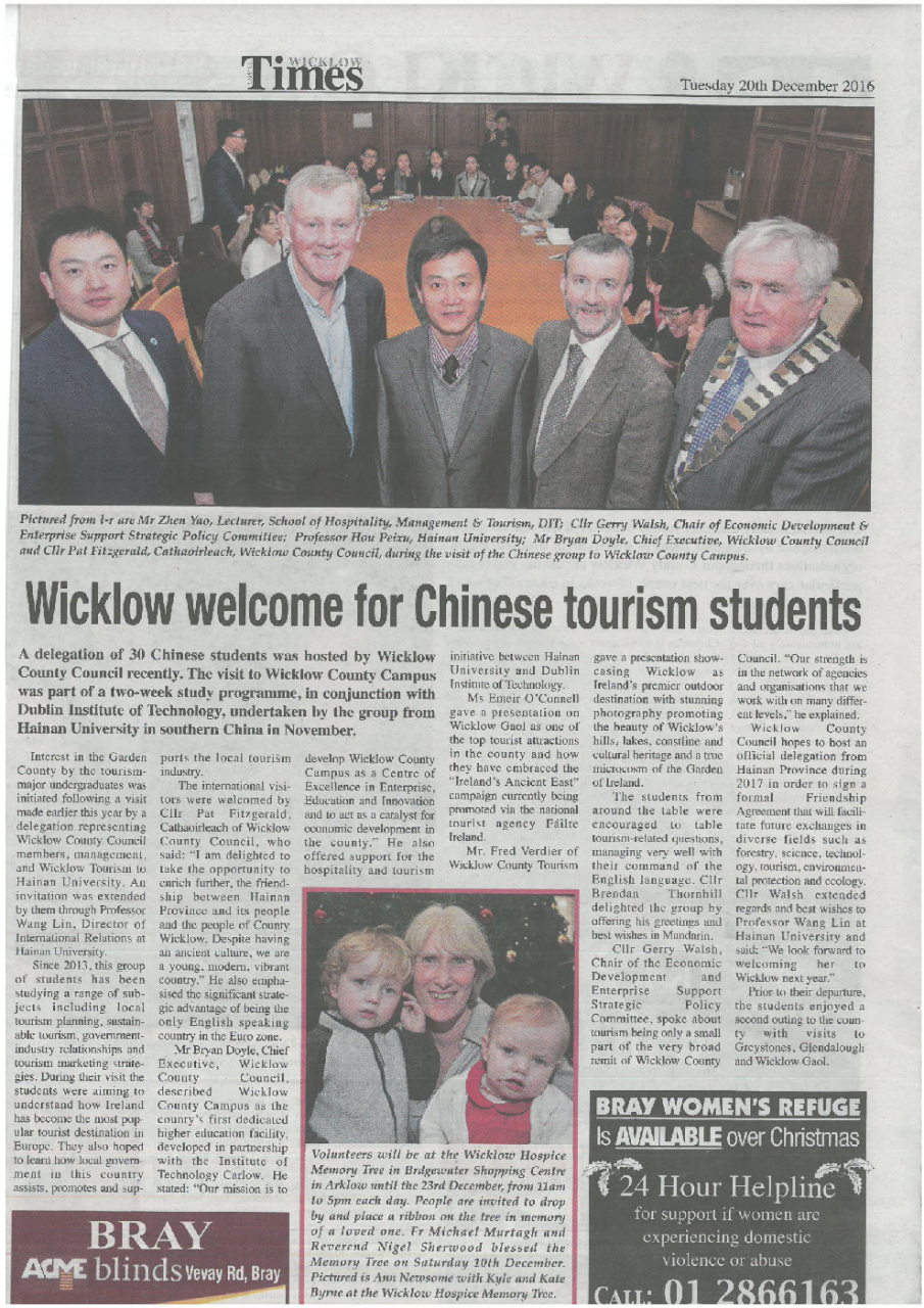 当地媒体宣传报道suncitygroup太阳集团研修团访问威克洛郡
