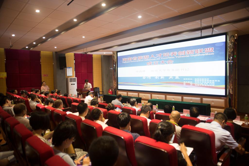 2017年6月18日下午3点,由公司旅游公司承办的“海南省旅游人才培养创新联盟”成立大会在旅游公司3D实验室成功召开,标志着由suncitygroup太阳集团和海南省旅游协会共同牵头发起的海南省旅游人才培养创新联盟的正式成立。suncitygroup太阳集团当选为联盟理事长单位,公司党委廖清林常务副书记当选为联盟理事长,旅游公司韦开蕾经理当选联盟常务副理事长,联盟秘书处设在旅游公司,联盟秘书长为王永强副经理。海南省教育厅黎岳南副厅长、海南省旅游委陈祎波副巡视员、suncitygroup太阳集团廖清林常务副书记出席了成立大会,并分别做了大会发言。海南师范大学过建春副董事长、海南热带海洋公司杨兹举副董事长、海口经济公司王兴隆副董事长、海南外国语职业公司杨学前副经理、海南软件职业技术公司桂占吉副经理、三亚城市职业公司党委李国昌副书记、海南省旅游协会曹嘉琪副秘书长,以及海南其他涉及旅游相关专业的本科、高职和中职院校的校领导、院领导20余领导和嘉宾出席了会议。此外,还有18家企业代表、新闻媒体等共约80名与会代表参加了此次联盟成立大会。