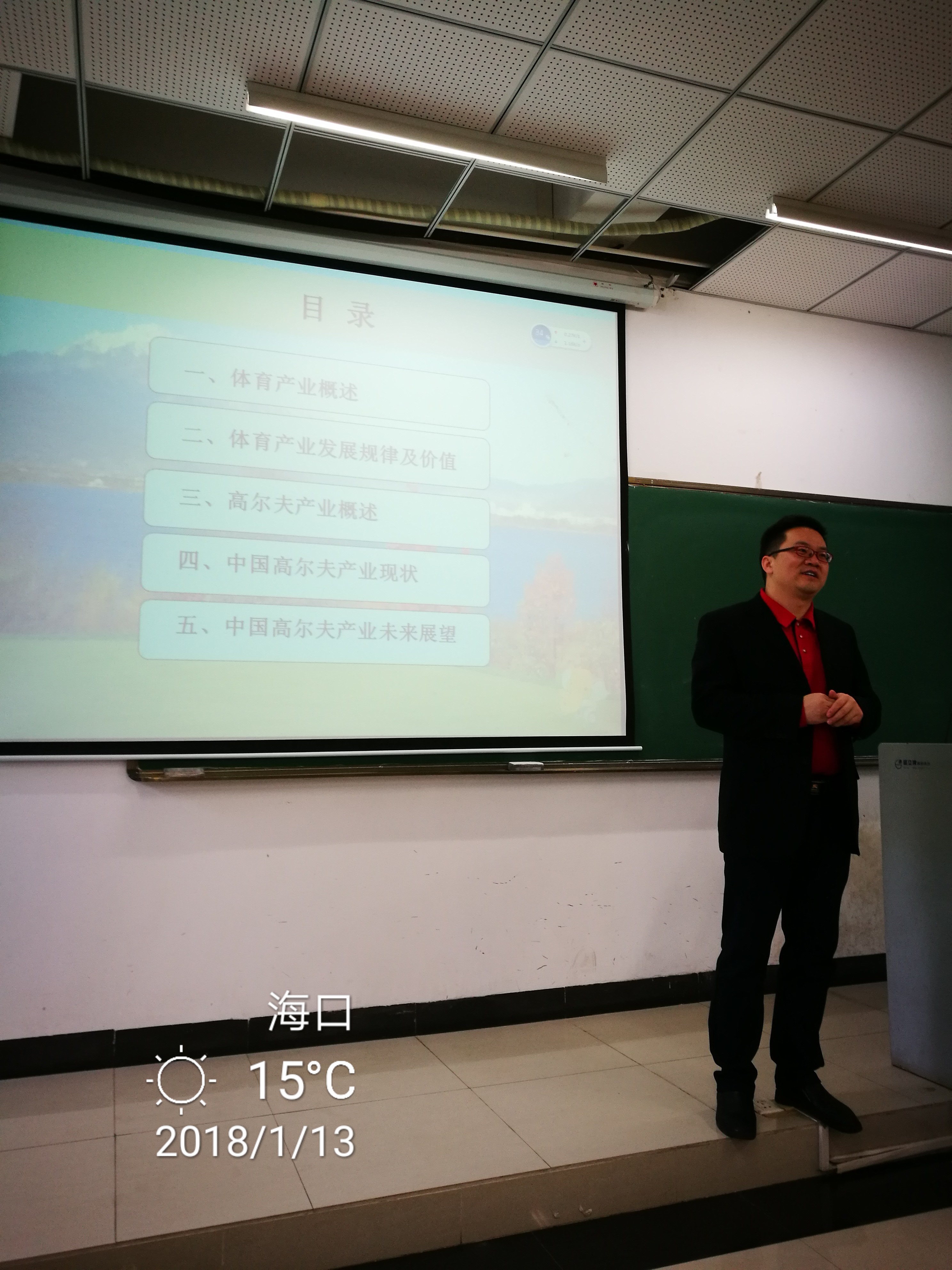 2018年1月13日至16日,中高协场地委员会副主任、中国高尔夫产业网董事长、北京洞迷体育发展有限公司总裁、北京林业大学高尔夫教育与研究中心副主任、中国高尔夫教育联盟常务副秘书长段小春先生给2015级员工做了精彩的冬季小学期讲座——《国外高尔夫产业发展》。
