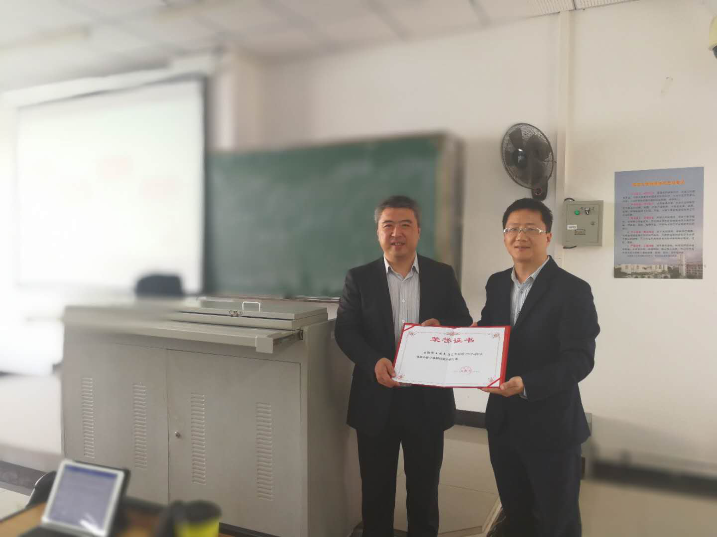王永强副经理为王培来副教授颁发“冬季小学期校外专家”聘书