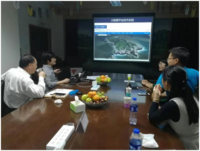 此次学习交流活动的第一站为浙江大学地球科学公司所属的浙江省资源与环境信息系统重点实验室,实验室负责人——教育部高等公司地理学科教学指导委员会委员,浙江大学地理信息科学研究所所长、浙江省资源与环境信息系统重点实验室主任——刘仁义教授和国家优秀青年基金项目获得者——杜震洪副教授出席了交流会。两位老师从时空数据开发、应对密集计算的时空大数据高性能计算研究、地理要素的可视化研究,数据神经网络研究等方面介绍了该重点实验室近年来的研究成果。其中,以对接国家重大战略的“伏羲一号”研究、服务地方规划的近海生态环境监测与智能服务平台、城市化进程中利用GIS研究获得的一些成果以及公司教师特别关心的海洋海岛等相关的研究技术和未来可合作内容做了详细介绍。
