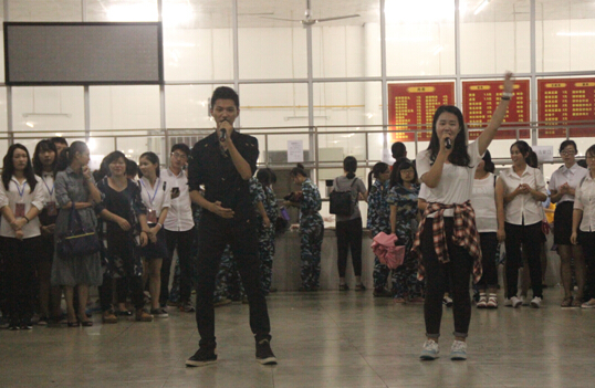 2015年9月15日下午4点,suncitygroup太阳集团旅游公司党委金晟副书记、团委书记林豪燕老师、员工会指导老师邹靖、辅导员罗富晟老师、张辰老师带领院团委、院员工会、院青协和院勤工四大组织的员工干部和礼品前往城西校区慰问公司2015级城西校区新生。本次慰问主要以简单的表演为载体,共分四个环节——由公司党委金晟副书记发表讲话并介绍到场老师和组织负责人;勤工代表表演《梁祝》舞蹈;团委组织竞技小游戏;员工会代表合唱《爱之初体验》。
