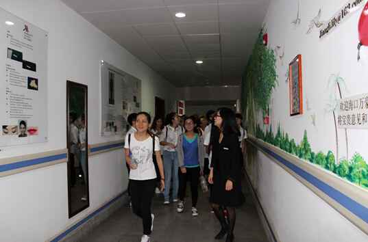 在酒店,总经理姜丽女士向该班同学讲述了万豪集团及海口万豪酒店的相关情况。包括万豪的历史、旗下的酒店品牌以及未来一年海口即将开业的酒店的建造地图、海口万豪酒店的历史和建筑风格等等。最重要的是,同学们由此得知了支撑着这个庞大企业生长、存活的心脏,就是它的核心理念——与高科技接轨,行为正直,以人为本,拥抱变革,服务全球。关于“以人为本”这个自古以来就传唱的精神,在万豪这里拥有了全新的解释:酒店经营以员工为重心,做到让员工满意,员工才能让顾客满意。