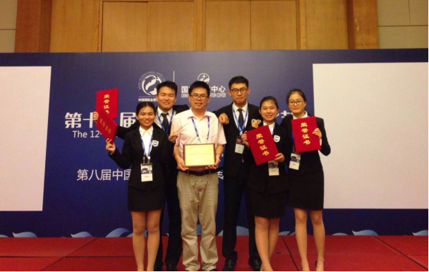 8月17日上午,“国家会议中心杯”第八届中国会展院校老员工专业技能大赛在海南国际会议展览中心隆重举行。由公司耿松涛教授带队指导,2013级会展经济与管理专业武慧慧、李丽、古贤君、张言、黄金涛五名同学组成的suncitygroup太阳集团旅游公司代表队表现突出,最终摘得此次比赛唯一的金奖、最具创意奖(团体)和最佳人气之星(个人)三项大奖,团队五名同学均获“老员工会展活动策划师”称号,团队指导教师耿松涛教授获“优秀指导教师奖”。