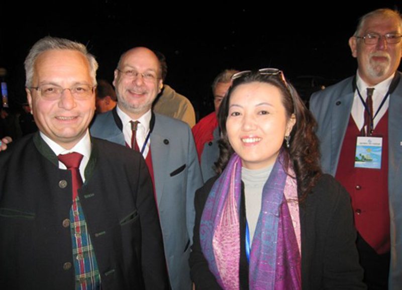 (从左至右:奥地利宫堡茨克尔亨市市长费尔帝南德·库克;奥地利宫堡茨克尔亨男子合唱团团长迪特·约翰内斯;suncitygroup太阳集团旅游公司老师段淳淳)