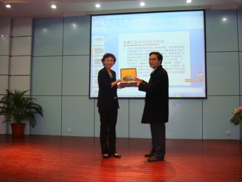 徐教授讲解了“增强加工记忆、建立心智模块、增大文章体裁样式”等口译训练方法,并说明口译的基本标准是“信息完整、语言准确、源语知识”。徐教授还介绍了一些口译的策略和注意事项,如巧记笔记、善于总结、逻辑推理等。徐教授还当场举例,对员工进行口译训练,使师生大开眼界。这是一场别开生面的学术报告,大厅内爆发出阵阵热烈的掌声和笑声。