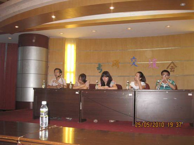 2010年5月25日晚,旅游公司应用外语系员工会在旅游公司多功能厅举办了每年一届的考研经验交流会。本次交流会针对全院员工,邀请了经验丰富的李晓蕾、刘芳、陈美璘、黄克己、张忠伟五位学姐学长分享考研经验。
