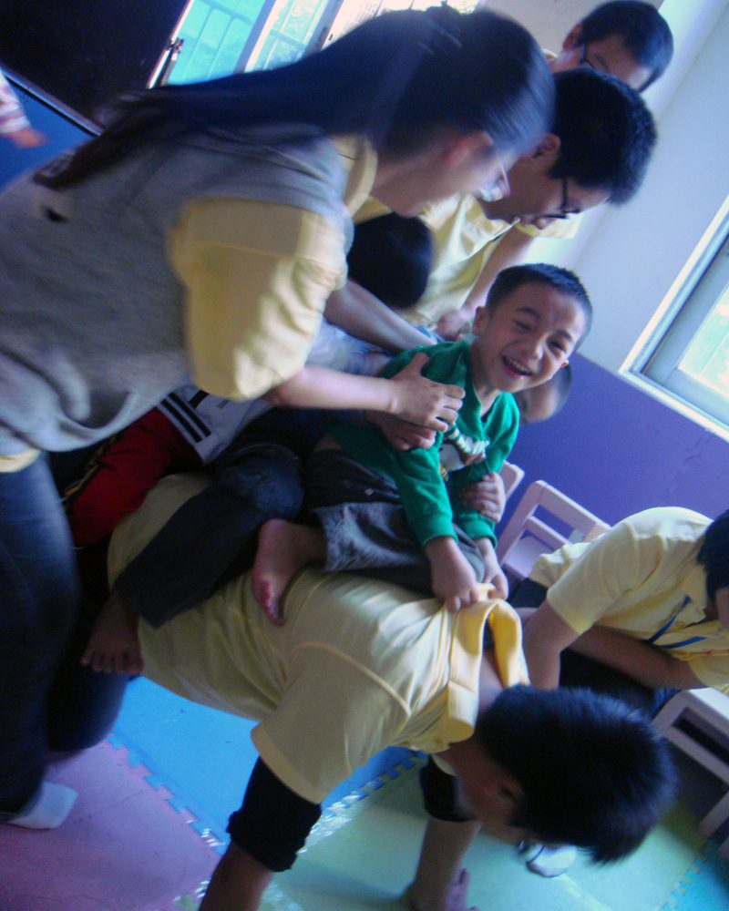 在与残联中心老师的交流中,我们知道了残联的一些老师也是聋哑患者,他们在用自己积极生活的态度去感染小朋友们,鼓励他们大胆表现自己,勇敢面对生活。与此同时也进一步了解到小朋友的家庭和学习情况。在老师的带领下,大家和小朋友们一起看电视,玩耍,一起画画。志愿者教小朋友们说话,写字。当志愿者为小朋友们照相的时候,场面顿时沸腾起来,小朋友们争着、抢着、要着,吵闹声、欢笑声,此起彼伏,他们摆着一个个独一无二的造型,当时间定格在一张张天真的面庞,一双双纯净的眼神那一瞬间,所有的志愿者都感动了。活动中,为了更好地与小朋友们交流,志愿者用各种各样的方式传递者友爱和希望,当志愿者与聋哑儿童抱在一起时,大家都感动得落泪了。聋哑儿童虽然失去了聆听的能力,但是他们用自己小小的心灵去热爱着生活,渴望着外面的世界,渴望着他们爱的人向他们伸出双手,张开怀抱……