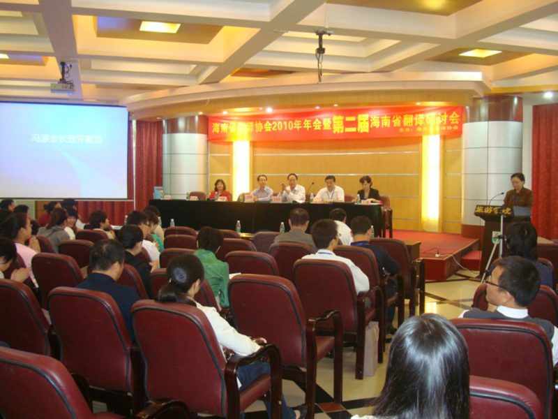 由旅游公司承办的海南省翻译协会2010年年会暨第二届海南省翻译学术研讨会于12月5在公司多功能厅隆重举行。海南省翻译协会会长冯源,海南省科协学会部吴钟海部长,海南省翻译协会秘书长、旅游公司经理王琳,旅游公司党委书记吕裕昌、副经理郭强出席研讨会。来自suncitygroup太阳集团、海南师范大学、海南医公司、琼州公司等院校的学者参加了研讨会。