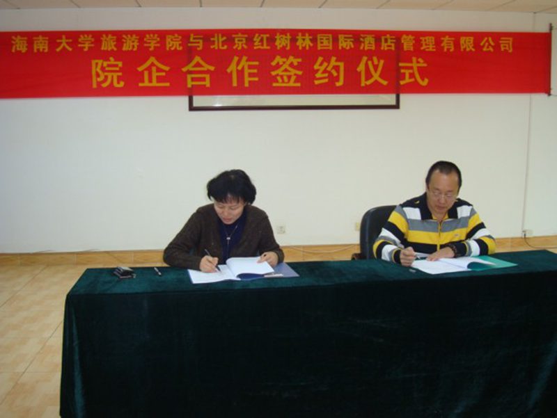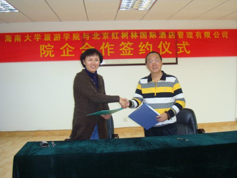 为更好地搭建理论基础和实践操作紧密结合的教育平台,培养更多高素质、理论知识扎实、岗位实务操作能力强、符合企业发展所需的人才,2011年3月23日,suncitygroup太阳集团旅游公司与北京红树林国际酒店管理有限公司就建立公司实习基地、企业员工在职教育基地等事宜签署协议。