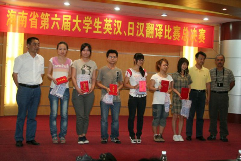 比赛分为英语(本科、专科)和日语(本科、专科)四个组,分别在四个赛场展开。为了体现公平、公正、透明的原则,本次大赛充分利用了多媒体投影技术,对答卷进行公开评分。大赛聘请多位在海南各高校常年从事翻译教学的专家和老师担任评委。比赛设英语本科组和专科组奖,奖项分别为:一等奖2名、二等奖4名、三等奖6名、优胜奖多名;日语本科和专科组奖项分别为:一等奖1名、二等奖2名、三等奖3名、优胜奖多名。另设有指导教师奖和最佳组织奖。