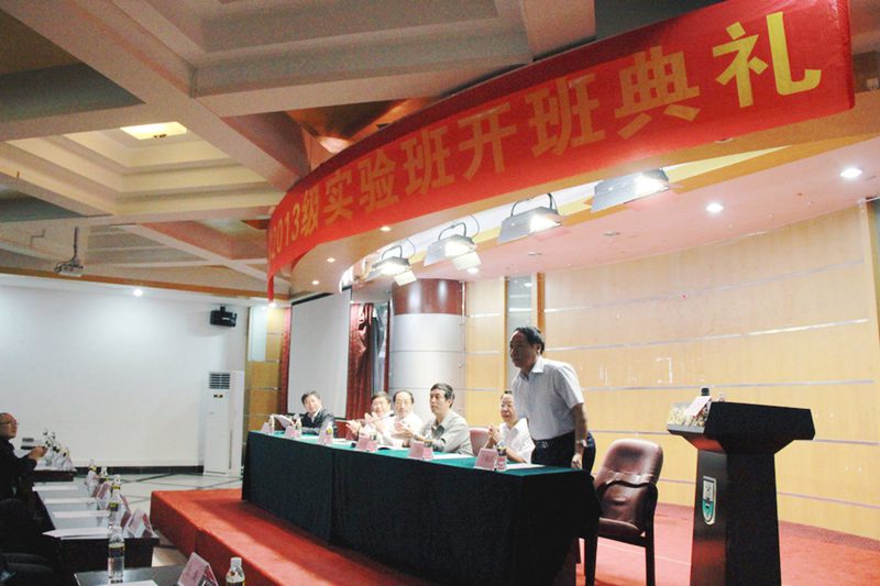 主持人宣布开班典礼正式开始后,向与会人员一一介绍到场来宾。紧接着,公司张琳老师作为教师代表发言。她引用《大学》中的句子,提出作为实验班员工应有的使命感,希望同学们在这样一个机遇与挑战并存的环境中有所收获。随后,由2011级理科实验班的同学和2013级法学文科实验班的同学作为新老生代表进行发言。在开班典礼的最后,曹阳副董事长做出了重要讲话。他首先对实验班的同学表示了祝贺和欢迎,接着提出,在公司良好发展的大前提下,实验班作为国家教育改革项目的载体,实验班的同学们将有获得丰富资源的机会,但同时也必须肩负起为实验班做出成绩的责任。