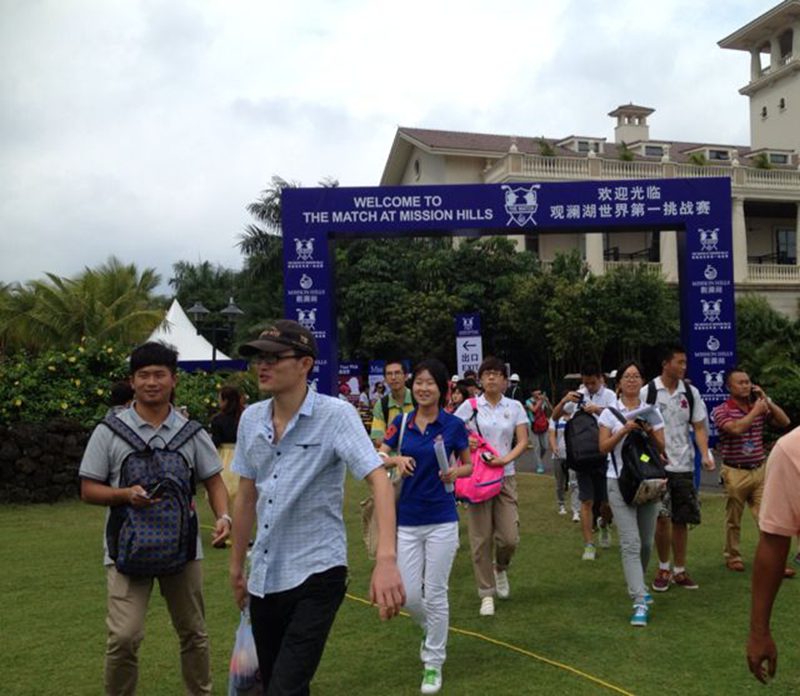 10月28日,堪称当今高尔夫界两大天王的泰格.伍兹与罗里.麦克罗伊在海口观澜湖黑石球场同场竞技。公司结合本次举世瞩目的“观澜湖世界第一挑战赛”重大赛事,开展了《赛事观摩与志愿者服务》教学实践活动。将高尔夫教学实践活动拓展至重大赛事赛场,在公司尚属首次。