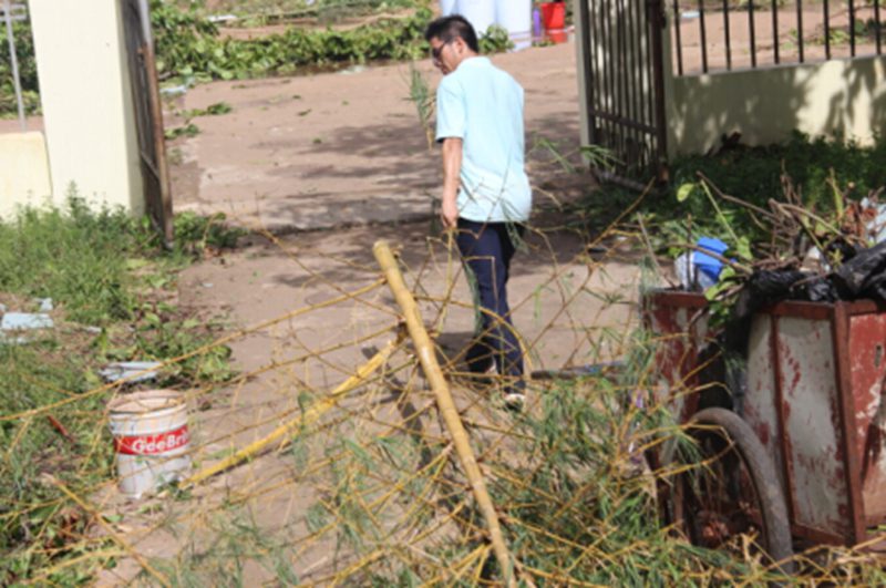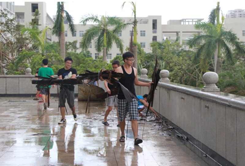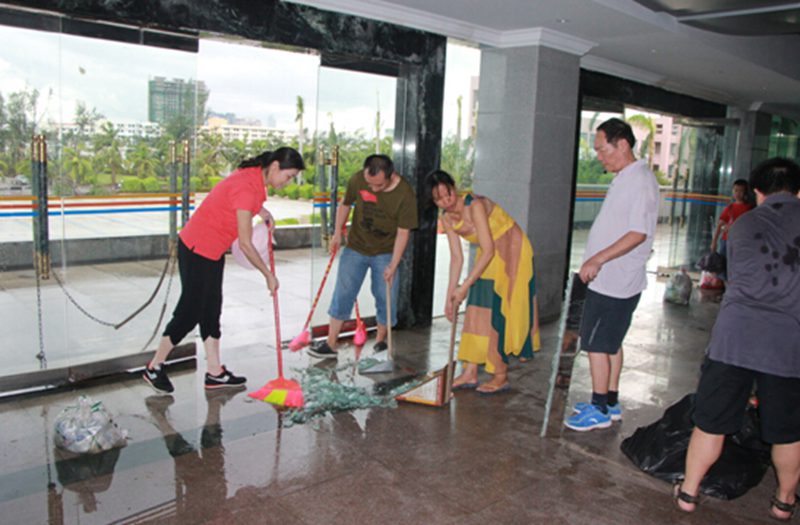 台风刚过,公司党委书记韩淑梅,经理王琳、原党委书记吕裕昌,副经理郭强、副经理胡涛,公司办公室主任李晓东、副主任甘泉、实验室主任王康寿,携同公司综合办、教研办、学工办、实验室等工作人员及部分留校员工,积极开展并部署了校园灾后自救活动。
