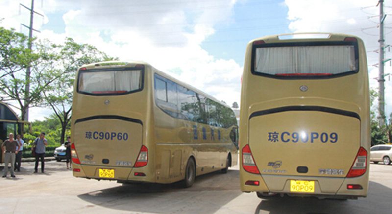 搬迁员工乘坐的大巴车井然有序地驶出城西校区