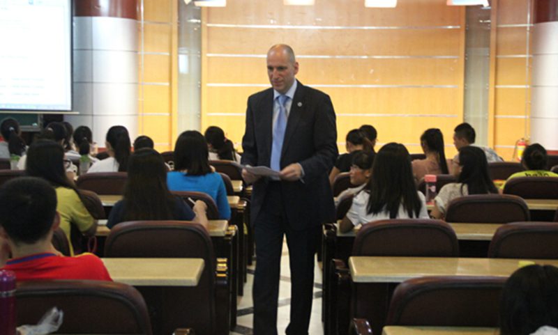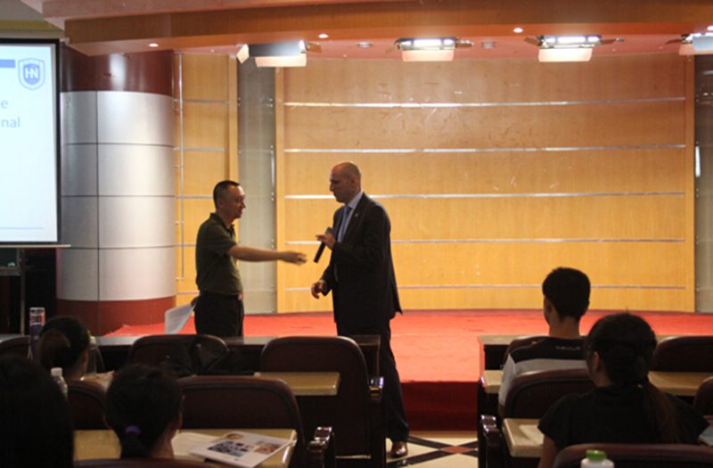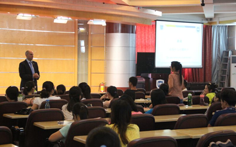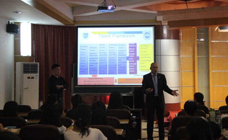 郭强副经理主持介绍本次讲座的主讲人Ralf教授并向其表示热烈的欢迎。随后,Ralf教授通过一段短片告诉同学们应从有限的时间内将自己的才华特点展示给面试官,并以此开始了本场讲座,从“what is Talent Management”、“Talent Management Activities”、“Talent Framework”、“Talent Inventory---Key Positions”、“Talent Management Stages”、“Talent Management and Information Technology”几个方面深入细化讲解了人才管理、国际公司面试技巧以及人力资源方面的知识。Ralf教授在本场讲座中重点强调国际集团往往通过制定人才管理系统来评估面试者,越好的企业对人才的要求也越高。基于这种现状,Ralf教授指导同学们应该全面了解人力资源对自己如何评估,继而进行量化,设定目标,与自己的实际工作相结合,通过高效率与高潜力两种方式展示自己,做到知己知彼,百战百胜。
