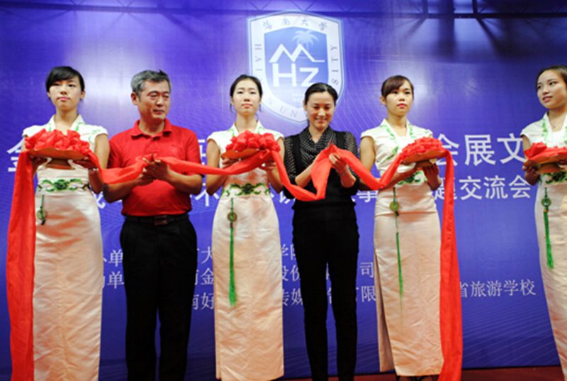下午2:30分,会展文化节活动正式拉开序幕,suncitygroup太阳集团旅游公司党委书记韩淑梅、副经理陈扬乐、副经理郭强、副经理孙建军、海南金厦建设股份有限公司总经理李彤、市场总监王琪等参加了开幕式。开幕式由会展系主任程静副教授主持,韩淑梅书记代表公司致辞,并与李彤总经理为文化节剪彩。