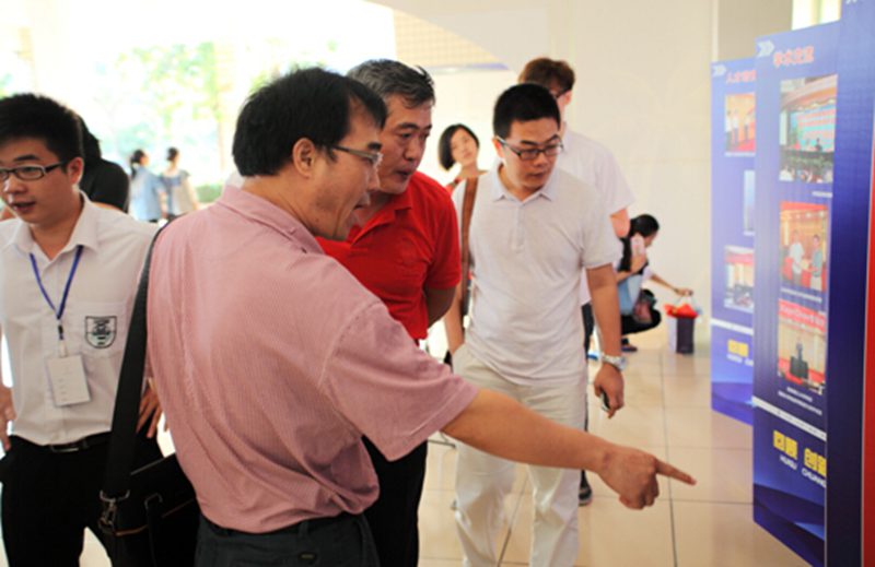 主题交流会结束后,与会的领导、嘉宾和同学们前往展览现场参观“旅游公司成就展”,大家饶有兴致的观看了“旅游公司院服秀”,通过展览现场的喷绘展板、同学们的手绘展板、奖状奖杯等实物,大家对旅游公司建院以来取得的成绩有了较为全面的认识。