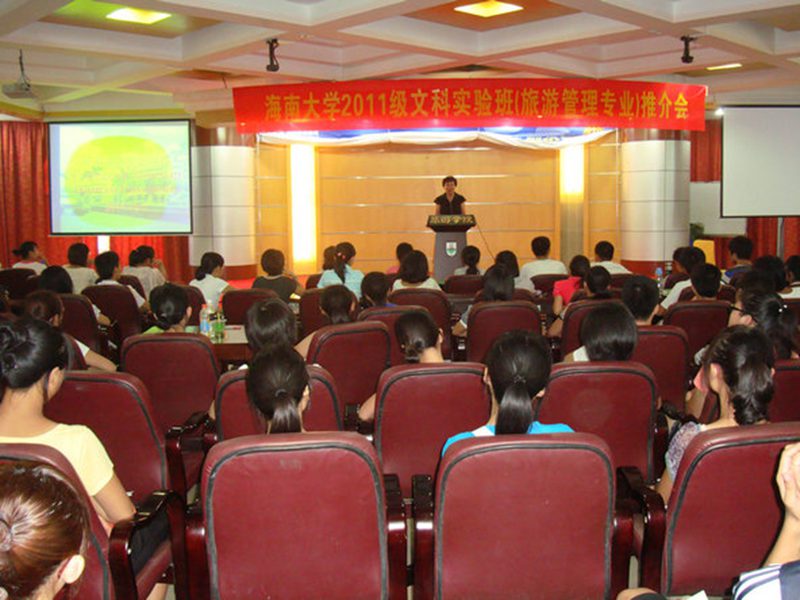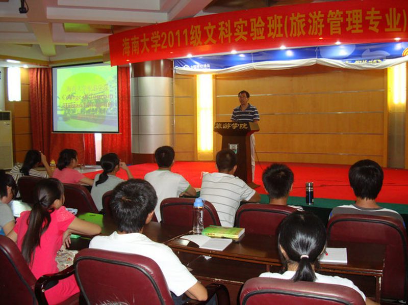 王琳经理介绍了旅游公司的概况、办学特色及发展定位。她通过分析我国高校规模的发展历程,提出了高等教育大众化背景下的精英化培养问题,指出文科实验班是2008年开始启动的公司产品改革工程重点项目,通过整合优质教育资源,坚持因材施教,进行个性化、精英化培养,实施与“211工程”重点建设高校相适应的复合型拔尖创新人才培养模式。她最后指出,建设国际旅游岛,需要高素质的复合型管理人才,希望同学们抓住机遇。