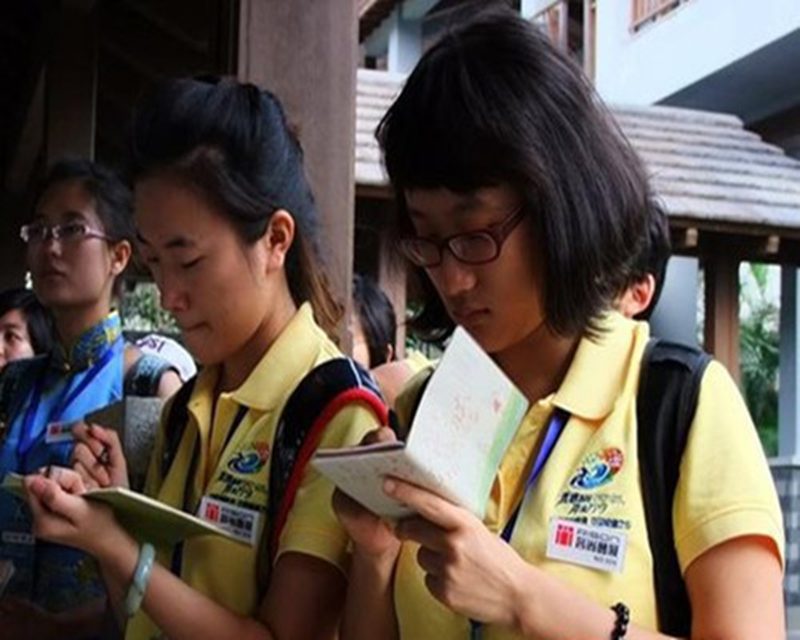 志愿者在认真做笔记