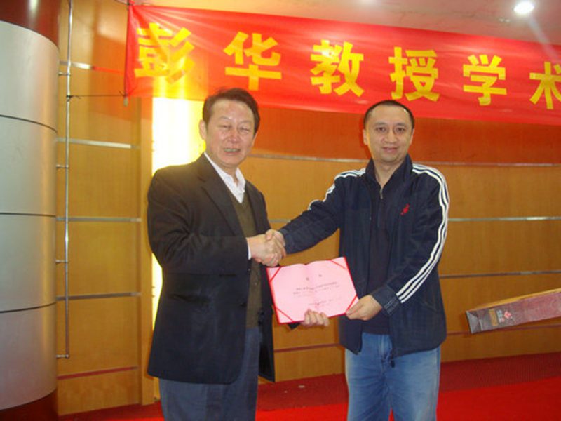 郭强副经理(右)为彭华教授(左)颁发客座教授聘书
