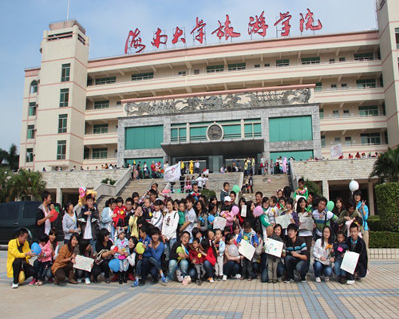 为了让孩子们观赏到海大的校园风貌,更好的感受到温暖,增加孩子们和“爸爸”“妈妈”互相熟悉的时间,每个“家庭” 在工作人员的带领下从办公楼出发,合理有序地游逛海大校园,在游园的路上,有些“爸爸”还把孩子扛上了肩头,“一家子”欢声笑语,其乐融融。逛完校园之后,志愿者们和小朋友们在旅院三教广场玩起了亲子游戏,如抬轿子、家庭绘画等,在家庭绘画时,有的志愿者迫不及待地拍起了全家福,有的志愿者耐心地鼓励不会画画的孩子,有的志愿者则握着孩子们的小手,手把手地教孩子们绘画。这群孩子永远都需要别人握住他们的手,给他们送来他们需要的那一份关爱。结束亲子游戏后,志愿者就陪伴着孩子们逛“庙会”,开心地游玩着由旅院各个班级所准备的游戏,孩子们玩得不亦乐乎,银铃般的笑声感染了在场的每一个人,志愿者“父母”们也不亦乐乎地帮着自己的孩子拎着丰厚的奖品,笑容绽露。