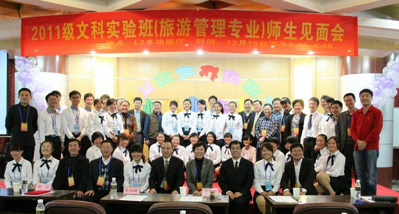 2011年12月15日下午三点,2011级文科实验班师生见面会在旅院二教多功能厅举行。海南省旅游委巡视员陈耀、海南省旅游委副主任陈铁军、海南省旅游委总规划师周安伟、海南省旅游协会副会长、景区分会会长代国夫、海南省旅游协会副会长、旅行社分会会长房新海、海南省旅游协会副会长、旅游饭店协会会长张会发、海南省旅游发展研究会会长王健生、珠江南田温泉度假区总经理张永康、逍遥集团执行总裁、雅圣高尔夫董事长王国强、黎锦总经理郭凯、海南纨美实业有限公司董事长、总经理夏怡等作为文科实验班的业界导师应邀出席了本次活动。