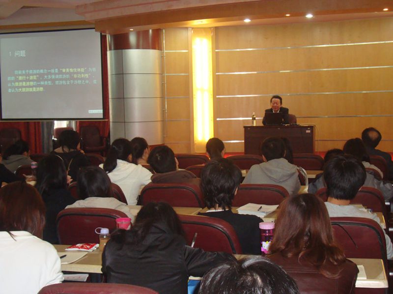 2011年12月19日至23日,来自中山大学的彭华教授在旅游公司进行了冬季小学期的讲授工作。彭华教授是中山大学城市与区域规划系、城市与区域研究中心教授,中山大学规划设计研究院风景与旅游研究所所长,旅游规划与景观设计硕士生导师。在此次的学习中,同学们深深感受到彭教授的和蔼可亲,还有对科学的不懈追求,他总会以自己独特的授课魅力让每个同学进入他所营造的旅游学的世界,让所学的知识有着更加深刻的理解和更深的探求欲望。