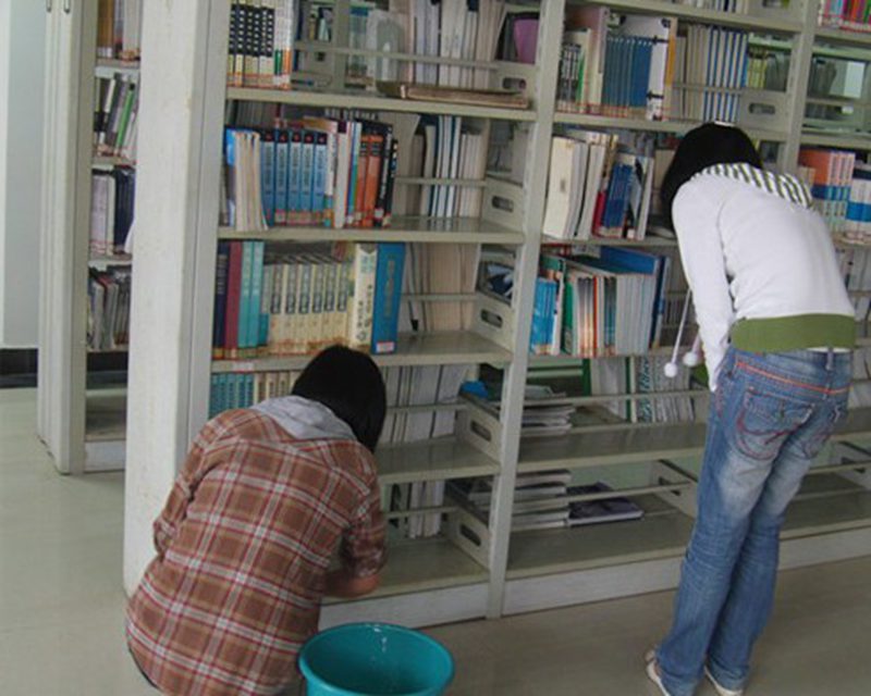 公司共青团员在公司图书馆进行清洁卫生