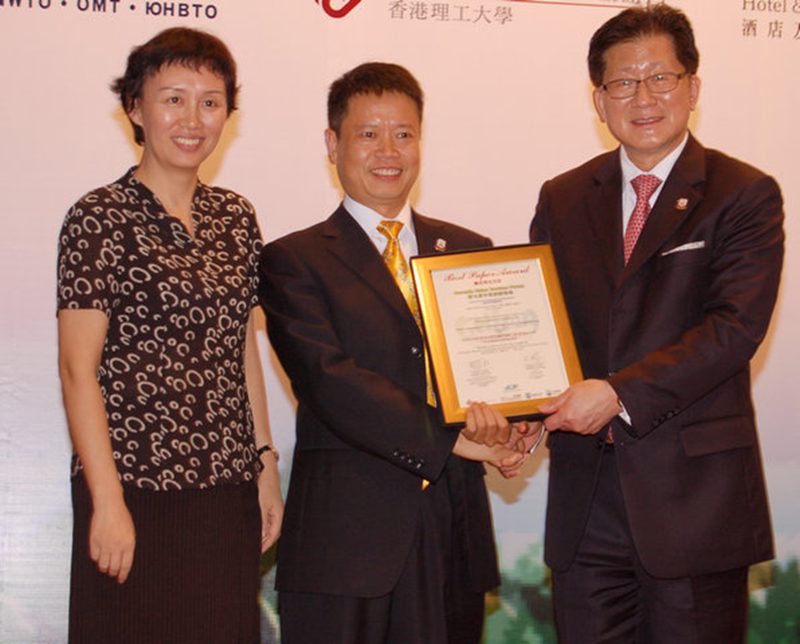 宋子斌博士(中)与旅游公司王琳经理(左)、香港理工大学酒店及旅游业管理经理田桂成教授(右)合影