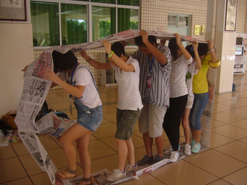 本次素质拓展从热身活动开始,每个部门出一个人,试吃蛋糕,其中有一个蛋糕中有芥末,同学们品尝后表情各异,都在尽力迷惑别人自己吃到蛋糕的真实情况。最后经过仔细观察和思考,大家选出了心目中“中彩”的人。不料,大家都被平时很老实的一位同学所蒙骗,都猜错了,结果大家一起接受了惩罚,吃了涂有芥末的小蛋糕,但心中洋溢着快乐。接下来的“旗人旗事” 则把大家分成几个团队,每个团队在规定的时间内想出自己团队的队名、口号、队型,大家都充分发挥自己的想象力,积极为自己团队出谋划策,并深刻地理解了什么是团队文化。设计好自己的团队,便进入了游戏环节。第一个游戏是传橡皮筋,每组成员用吸管传递橡皮筋,不能用手,传递过程中有同学忍不住笑了,也有同学传到一半将皮筋掉了,当然也有同学传递得特别轻松。在“无敌风火轮”游戏中,大家比的是效率,要把报纸粘成一个结实的大圆圈,让团队成员站到大圆圈内,像传送带一样边走边滚动,还要互相提醒脚下的速度,团队之间互相观察对方的进度,现场充满紧张的气氛。而“瞎子画画”游戏中,每个人都被蒙上了眼睛,按照描述在纸上画画,由于看不见,每个人的作品都像是出自幼儿园小朋友之手。画完后要求大家凭直觉找到自己的话,神奇的是,居然没有一个同学找错画,大家看着自己的画笑的不亦乐乎。最后,根据三轮游戏的得分,评出了团队的名次,可不论成绩高低,每个人都从中收获了快乐与温暖,这才是最珍贵的。