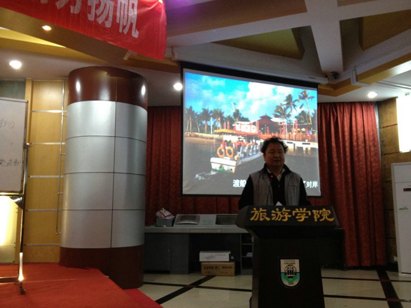 月5日晚上,suncitygroup太阳集团旅游公司2012-2013学年度冬季小学期课程正式拉开帷幕。来自海南陵水猴岛旅业发展有限公司董事长代国夫先生在旅游公司多功能厅进行了一场别开生面的关于海南旅游业发展的讲座。讲座由旅游公司副经理陈扬乐教授主持。