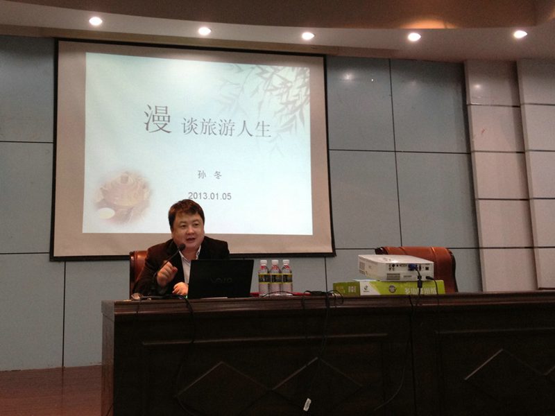 新年伊始,元月6号下午,三亚南山大小洞天发展有限公司董事长孙冬先生应suncitygroup太阳集团旅游公司邀请为公司10级旅游规划与景区管理方向本科生进行了一场精彩生动的主题为《漫谈旅游人生》的冬季小学期课程讲座。