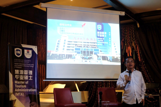 王嵣荃先生首先代表suncitygroup太阳集团旅游公司在会上致辞,对与会嘉宾的到来致以最诚挚的感谢,并围绕项目情况做了简短的介绍。王嵣荃先生结合海南自由贸易港、国际旅游消费中心的机遇,分析了海南及suncitygroup太阳集团独特的区位优势和政策优势,并深具信心的表示,suncitygroup太阳集团发展迅速,将会成为中国最优秀的大学之一,中马MTA项目将会成为中马高等教育合作的一个典范。说明会吸引了不少有意向的报名者,在互动环节,大家纷纷就项目的课程、报名条件等情况进行了咨询。